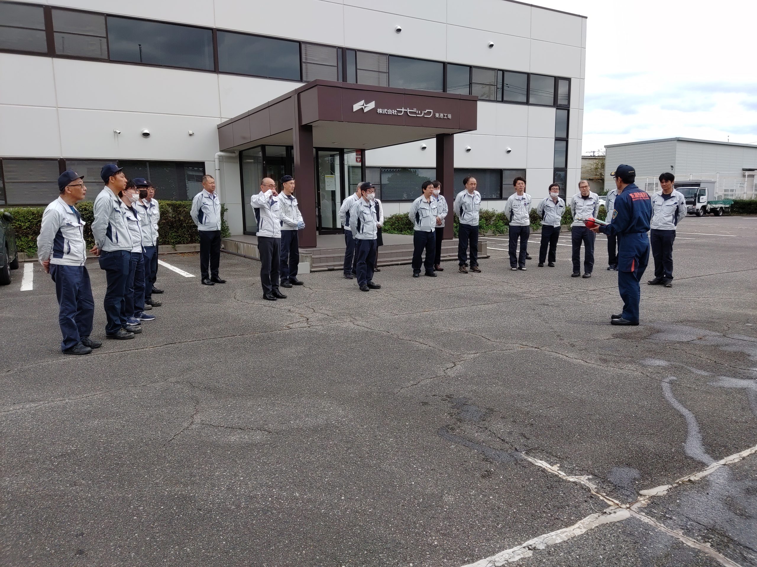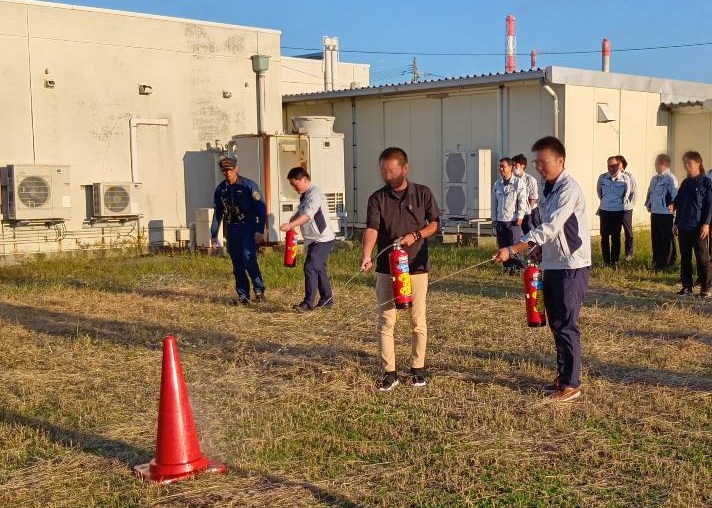 こんにちは! 10月15日、当社では消防訓練(防災訓練)を実施しました。 (東港工場では21日に実施) この訓練は、火災などの緊急時に社員一人ひとりが迅速かつ安全に 対応できるようにすることを目的として、行っています。今回は、社屋内での火災発生を想定し、 「初期消火 → 通報 → 避難誘導 → 消火器訓練」 という一連の流れを、実際の行動に近い形で訓練しました。 ・初期消火訓練 火災を発見した際の「火事だ!」という周囲への呼びかけや、 消火器の正しい扱い方を確認しました。 いざという時に焦らず動けるよう、消火器の位置や使用方法を 再確認する良い機会になりました。 ・通報訓練 119番への通報を想定し、火災の場所・状況・けが人の有無などを 落ち着いて伝える練習を行いました。 実際の通報時に慌ててしまわないよう、具体的な伝え方を学びました。